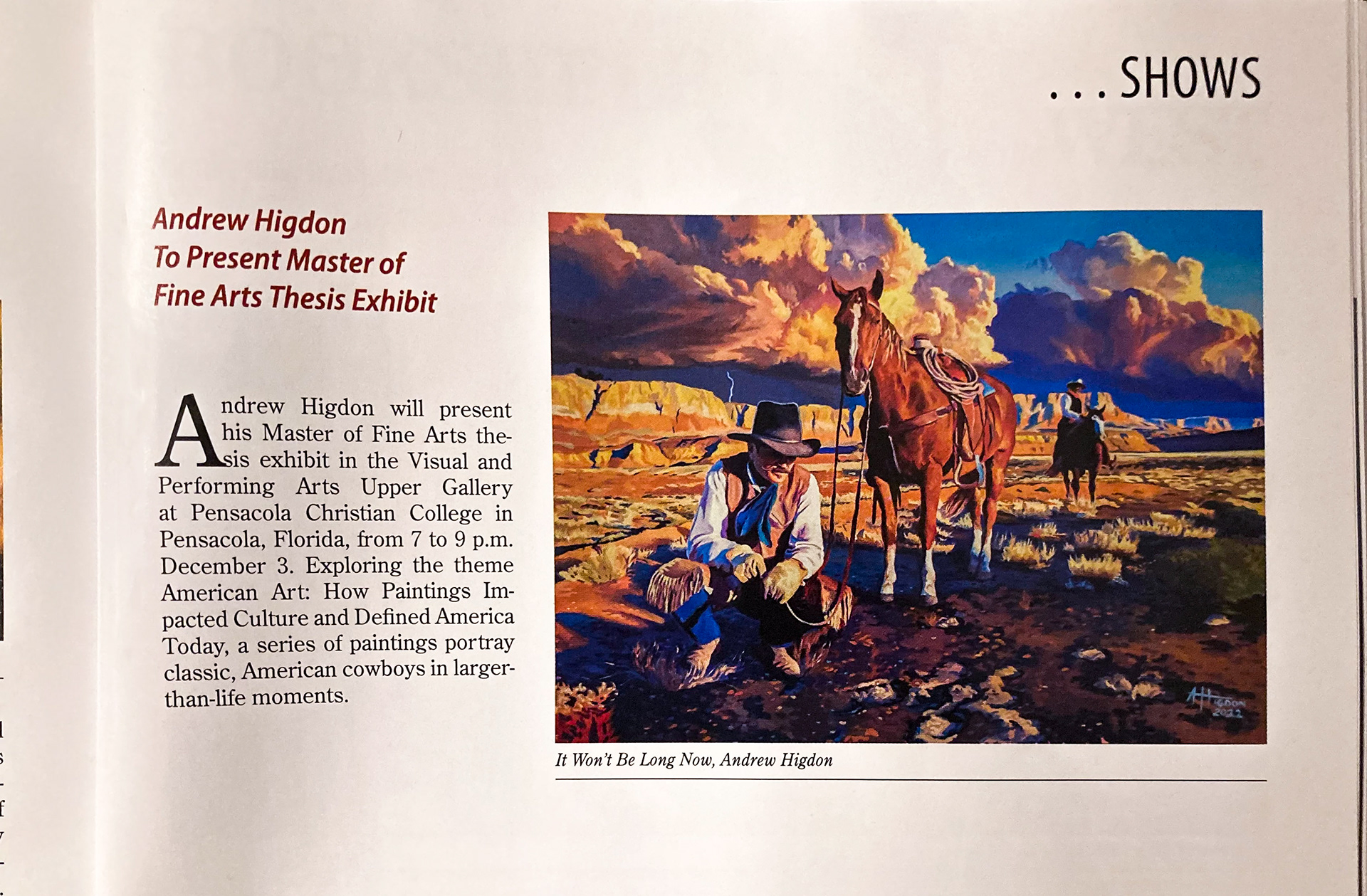 M.F.A. Show feature in Art of the West Magazine